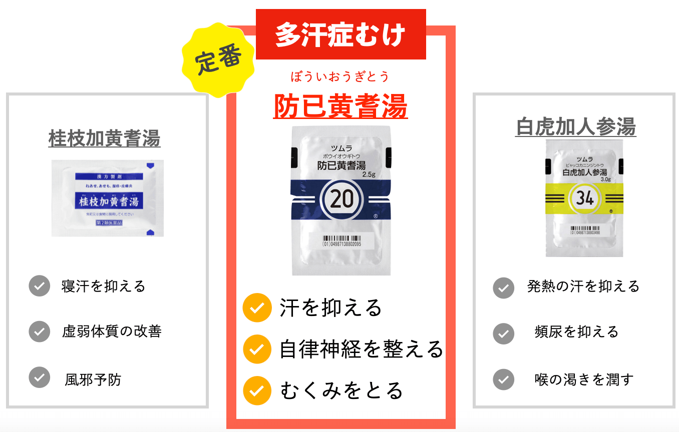 多汗症に良い漢方薬は主に3つありますが、