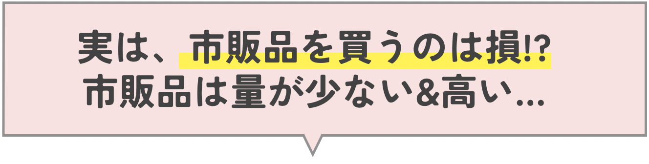 市販品だと高い上に量が少なく効きづらいためかなりの損…